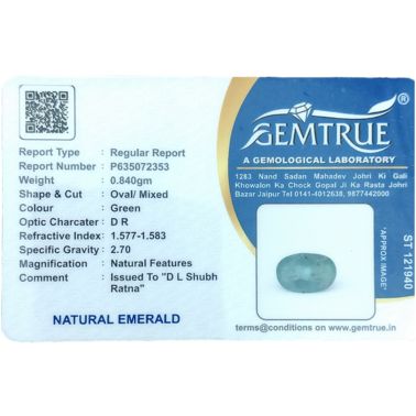 Emerald (Panna) - 2.79 Carat (3.06 Ratti) - Origin - Zambia