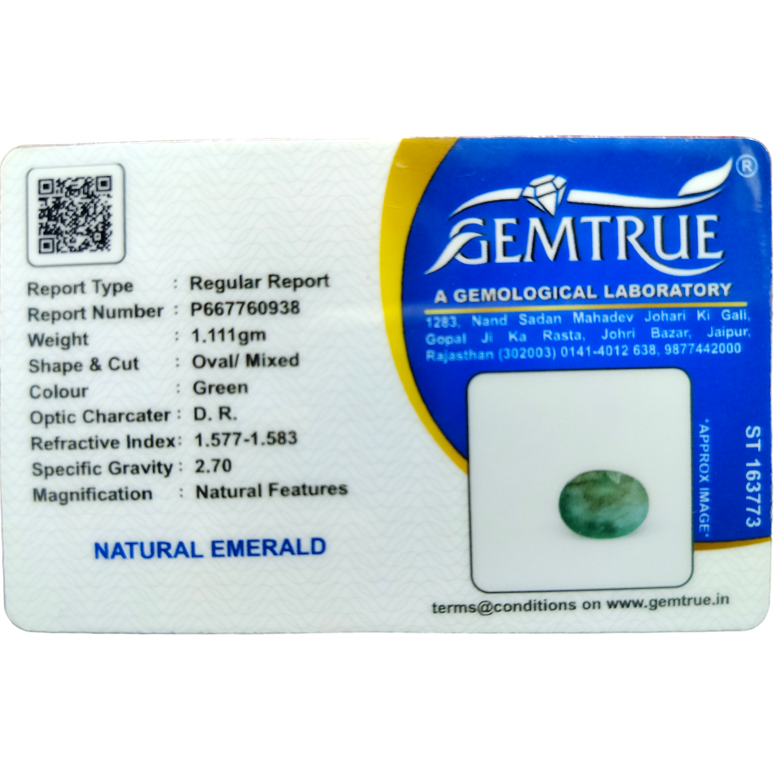| Emerald | Natural | 1.577 – 1.583 |