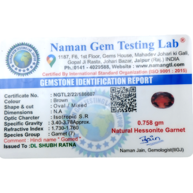 Hessonite garnet also known as gomed , is the gemstone of the Navagraha “Rahu”. It is a gem from garnet family comes under grossular garnet category. If weakened Rahu is known to cause trouble in many areas of life. Hessonite is a dark brown or honey-color, semi-precious gemstone comes in garnet mineral family. It is worn to ward off the negative effects of Rahu as well as popular to be extremely beneficial in financial and professional success. It is generally found in India, Africa & Sri-Lanka (Ceylon).