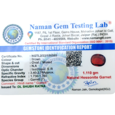 Hessonite garnet also known as gomed , is the gemstone of the Navagraha “Rahu”. It is a gem from garnet family comes under grossular garnet category. If weakened Rahu is known to cause trouble in many areas of life. Hessonite is a dark brown or honey-color, semi-precious gemstone comes in garnet mineral family. It is worn to ward off the negative effects of Rahu as well as popular to be extremely beneficial in financial and professional success. It is generally found in India, Africa & Sri-Lanka (Ceylon).