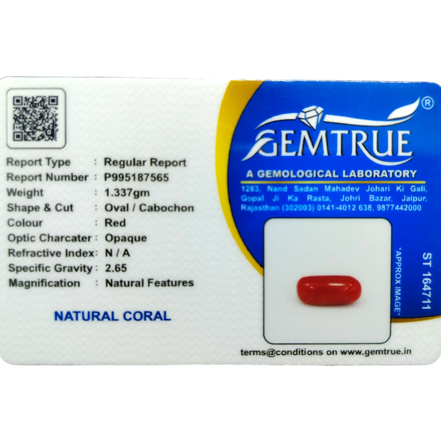 Red Coral Stone-6.53 Carat (7.17 Ratti)-Origin-Italy