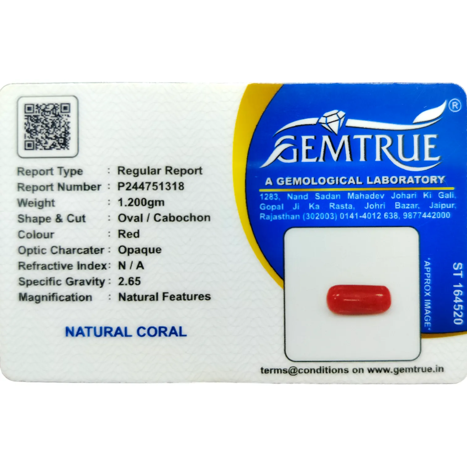 | Certification | Return Policy | Weight (Ratti) |