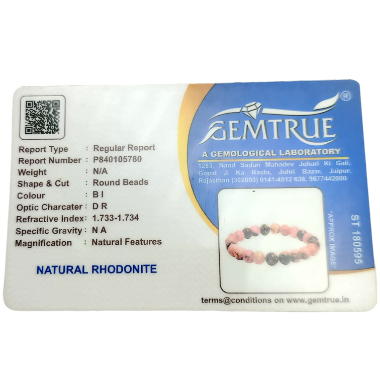 Natural Rhodonite Bracelet (Bead Size: 8 mm) Stretchable for both Ladies & Gents with FREE Lab Testing Certificate