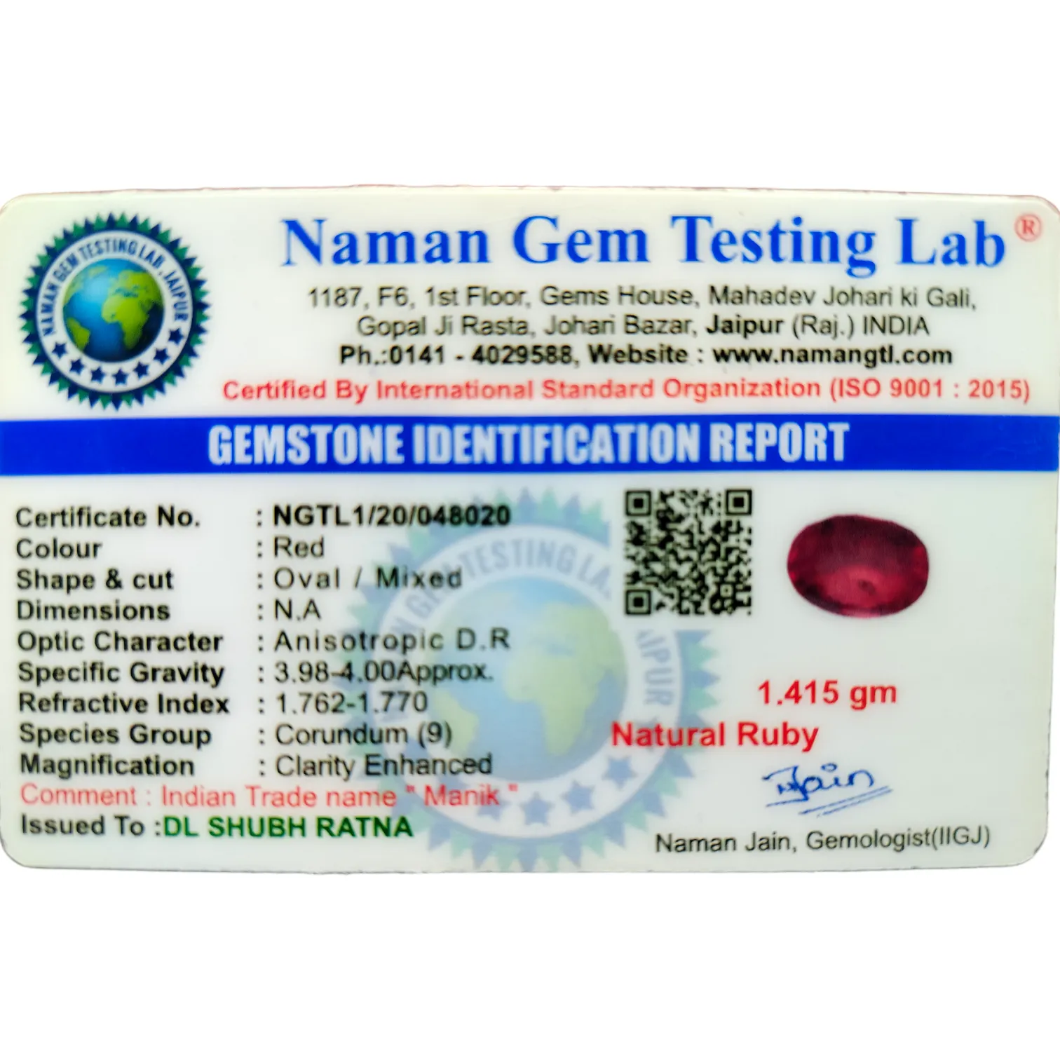 | Certification | Return Policy | Weight (Ratti) |