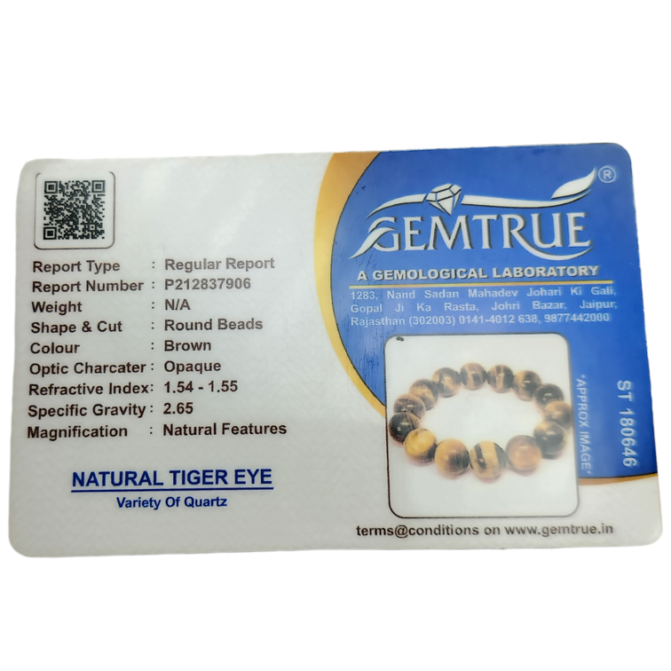 Natural Tiger Eye Bracelet (Bead Size: 8 mm) Stretchable for both Ladies & Gents with FREE Lab Testing Certificate