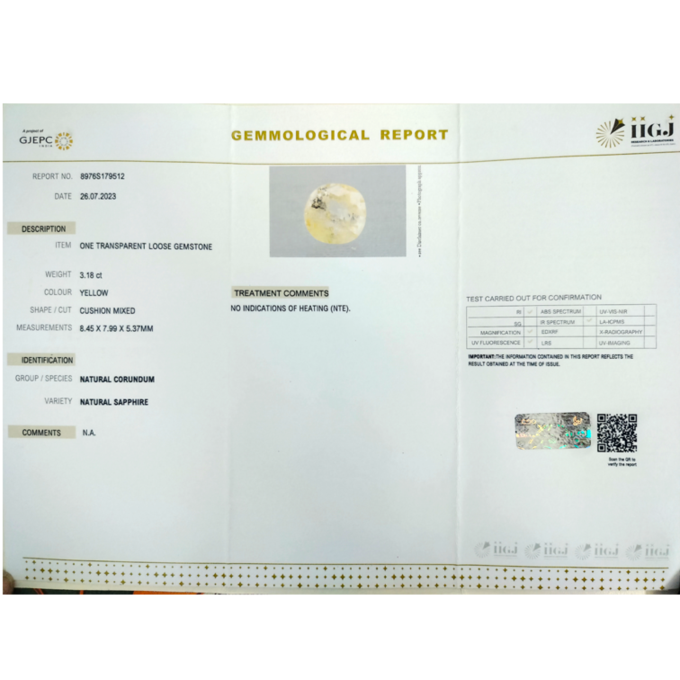 Yellow Sapphire – 3.18 Carat (3.49 Ratti)-Origin-Ceylon (Sri Lanka)