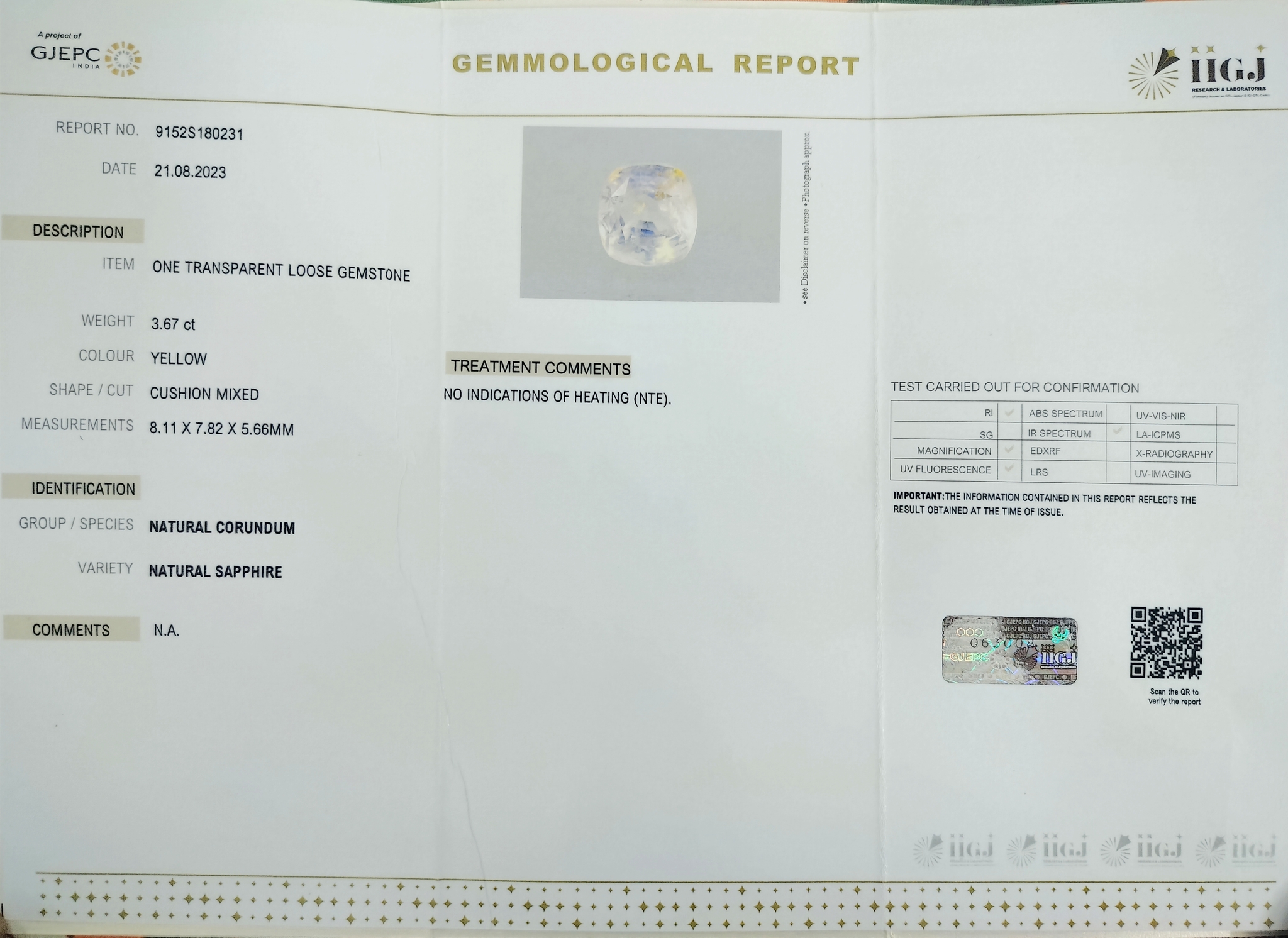 Yellow Sapphire – 3.67 Carat (4.03 Ratti)-Origin-Ceylon(Sri Lanka)