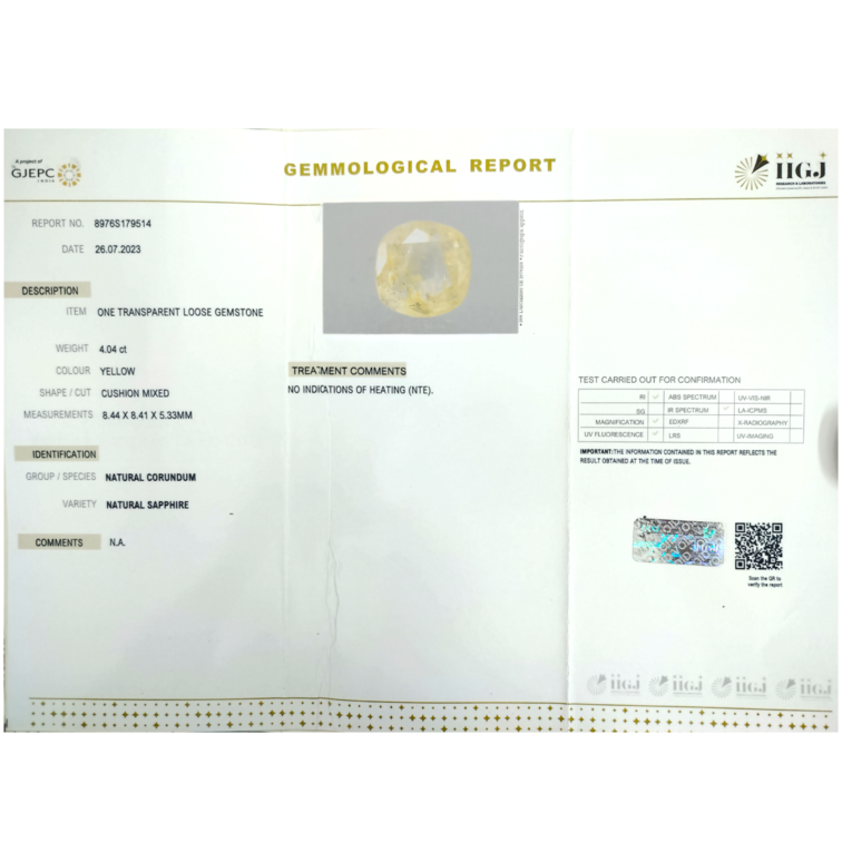 Yellow Sapphire – 4.04 Carat (4.43 Ratti)-Origin-Ceylon (Sri Lanka)