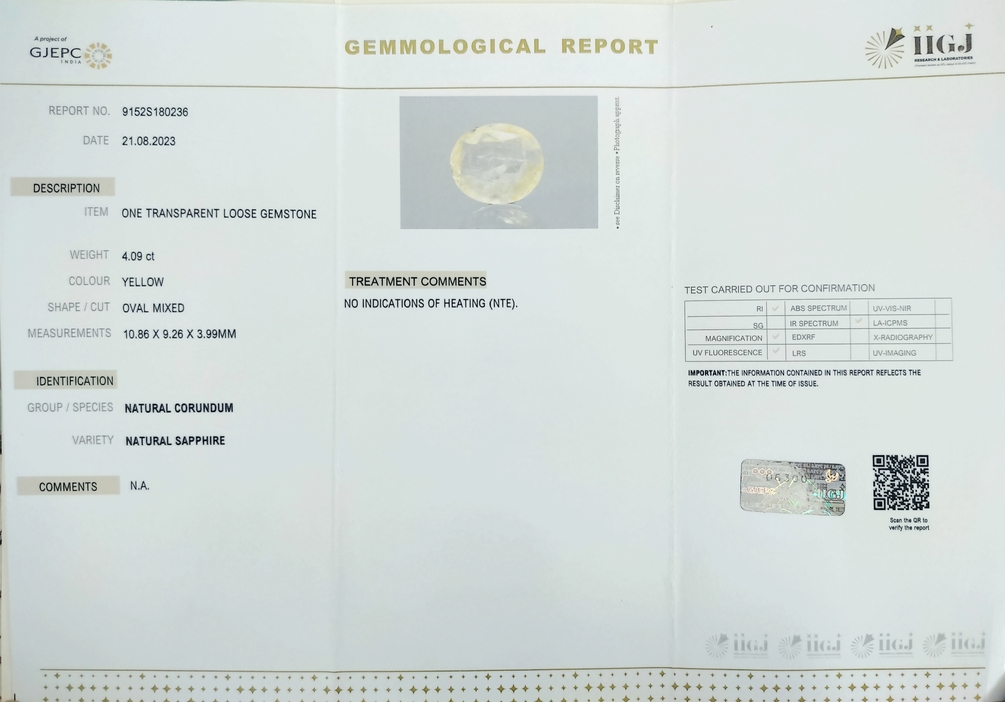 Yellow Sapphire - 4.04 Carat (4.43 Ratti)-Origin-Ceylon (Sri Lanka)